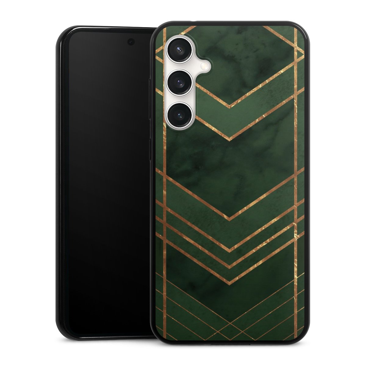 Dark Green Pattern Golden Stripes