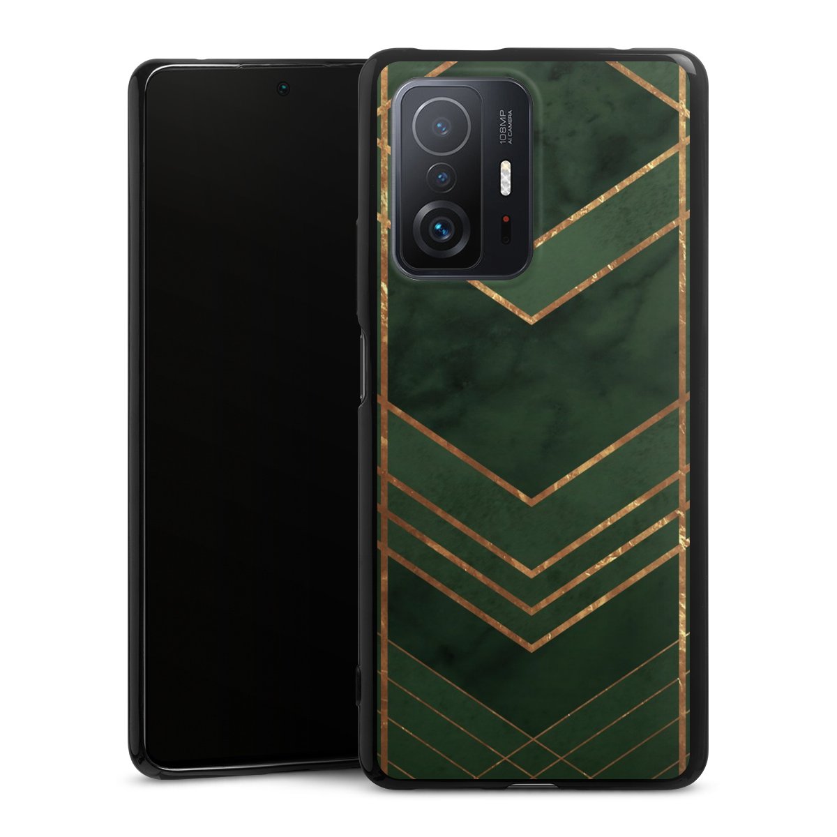 Dark Green Pattern Golden Stripes
