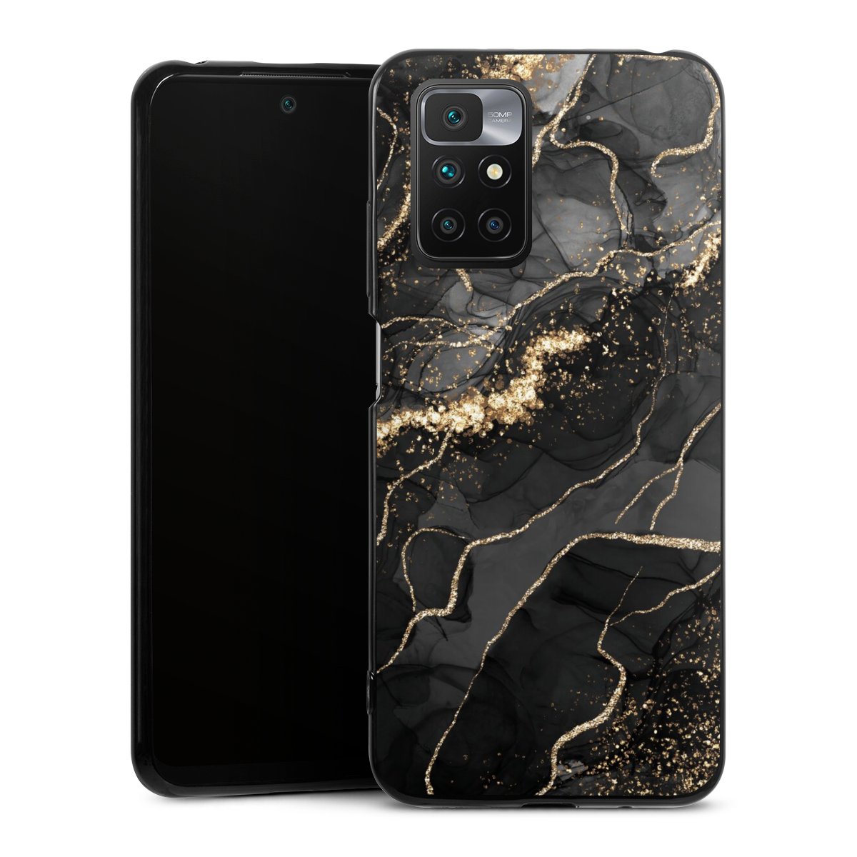Dark Marble Swirls Gold Look