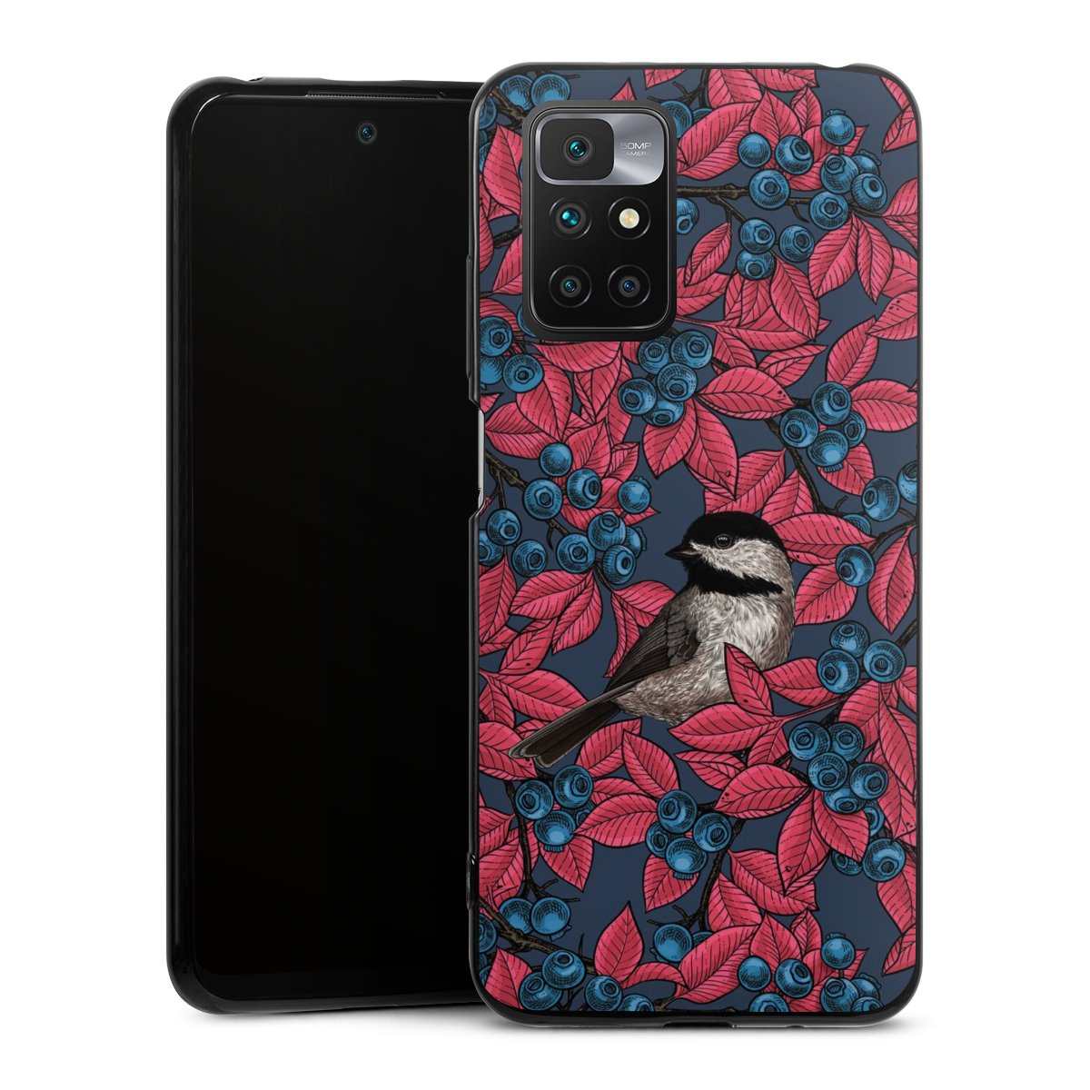 Blueberries And Birds On Navy