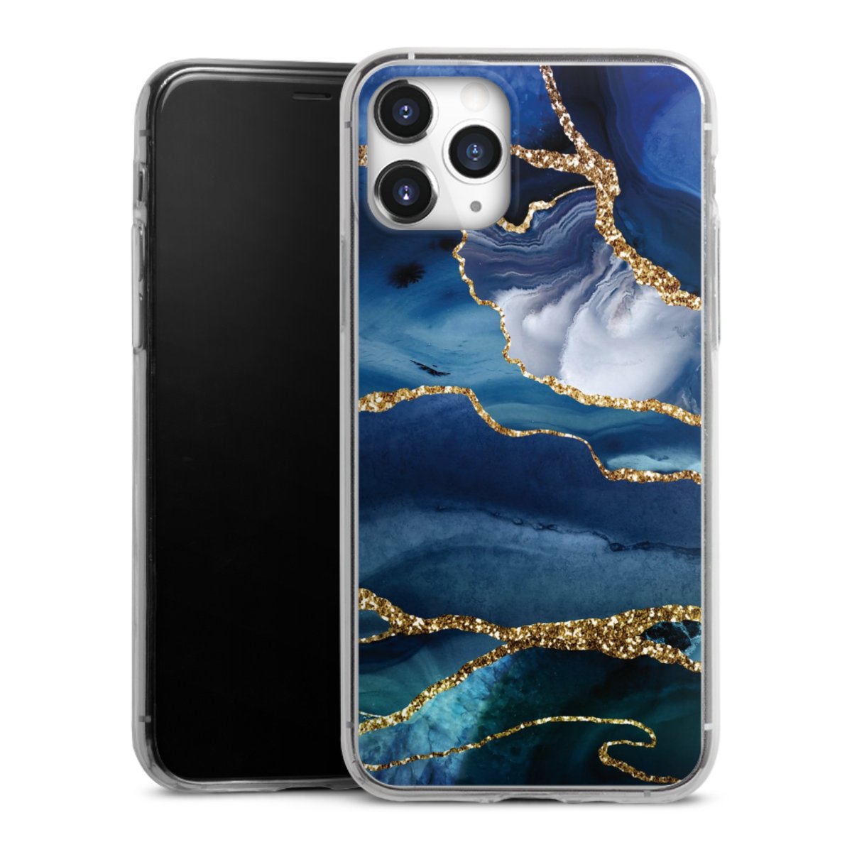Blue Marble Gold Glitter Look
