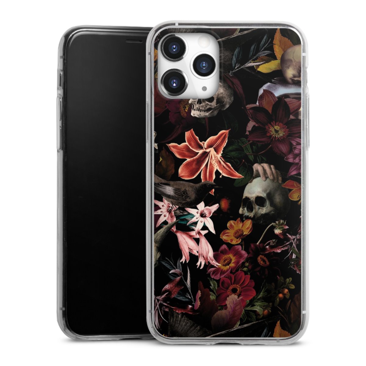 Skulls and Flowers on Dark Background