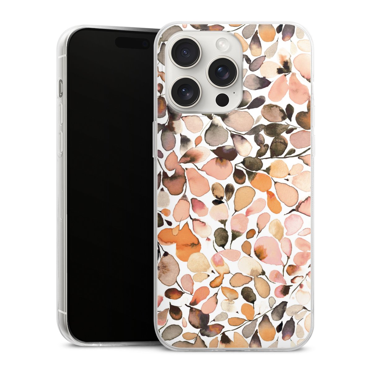 Eucalyptus Watercolor Leaves Dark Brown Autumn