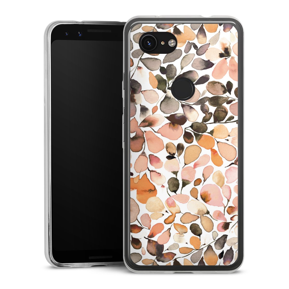 Eucalyptus Watercolor Leaves Dark Brown Autumn