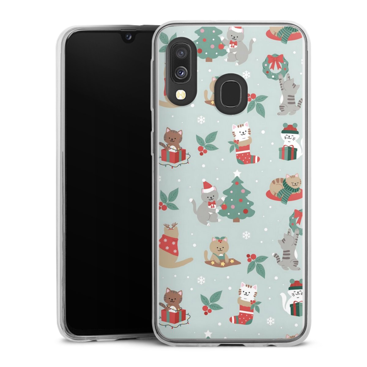Cute Winter Wonderland Christmas Festive Cats on Teal