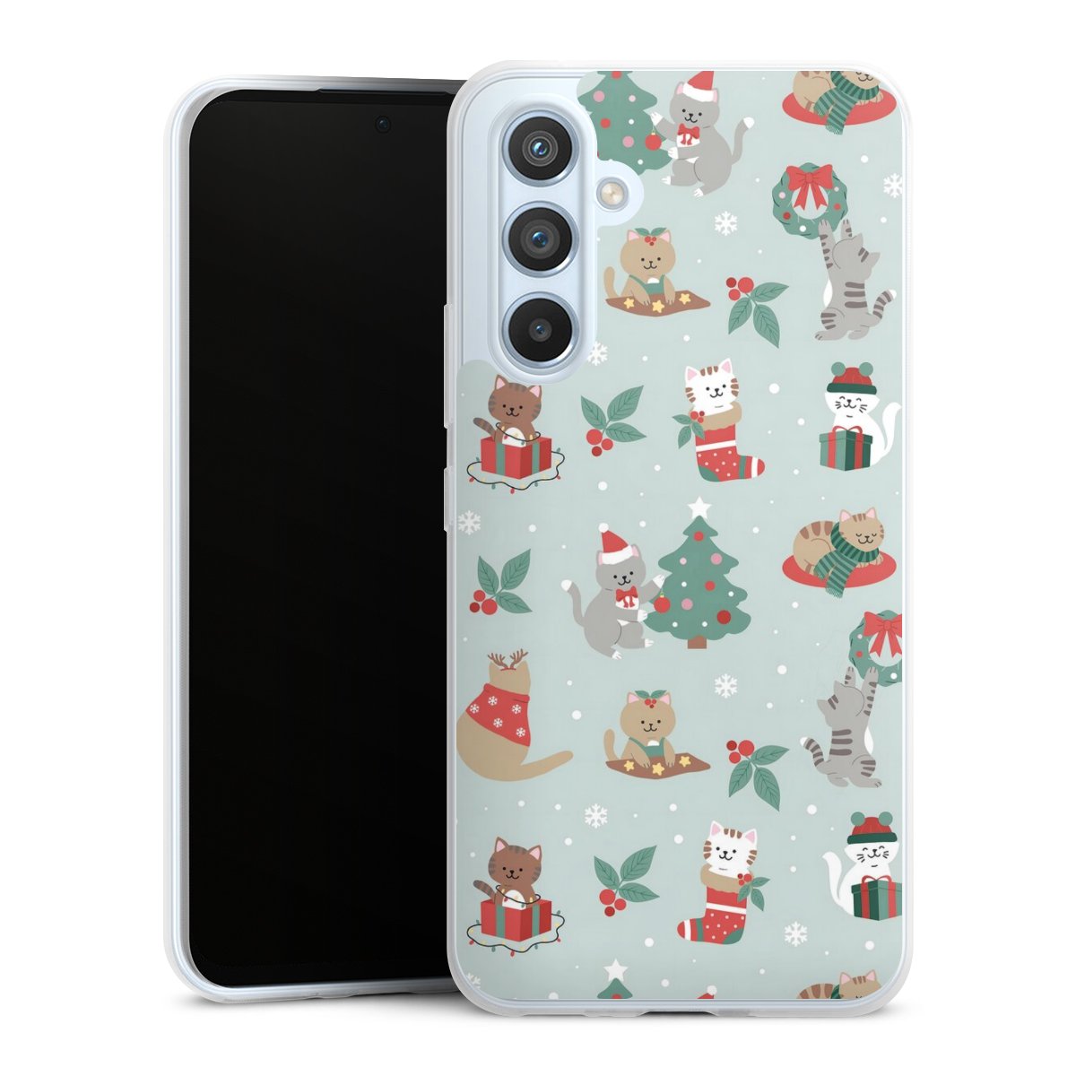 Cute Winter Wonderland Christmas Festive Cats on Teal