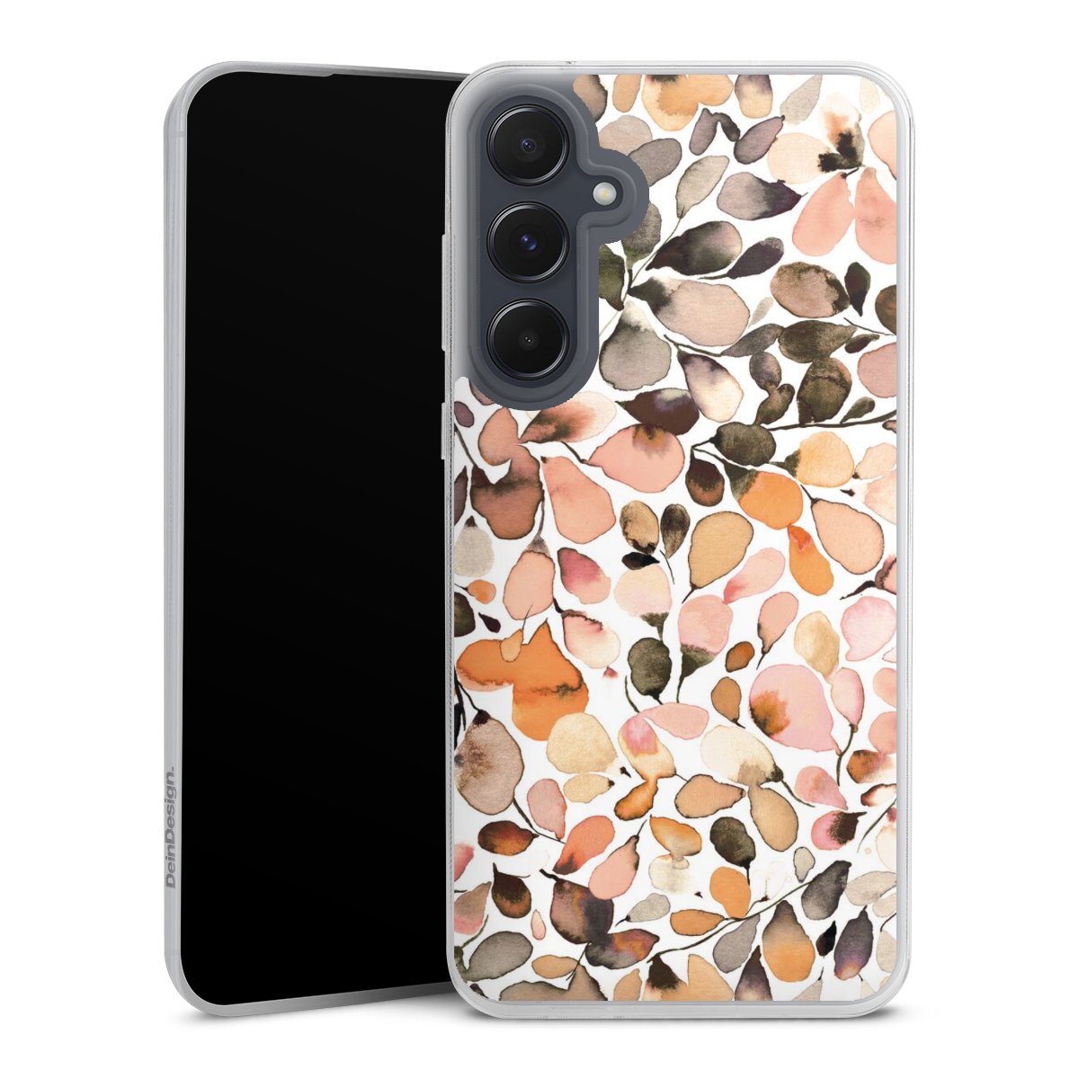 Eucalyptus Watercolor Leaves Dark Brown Autumn