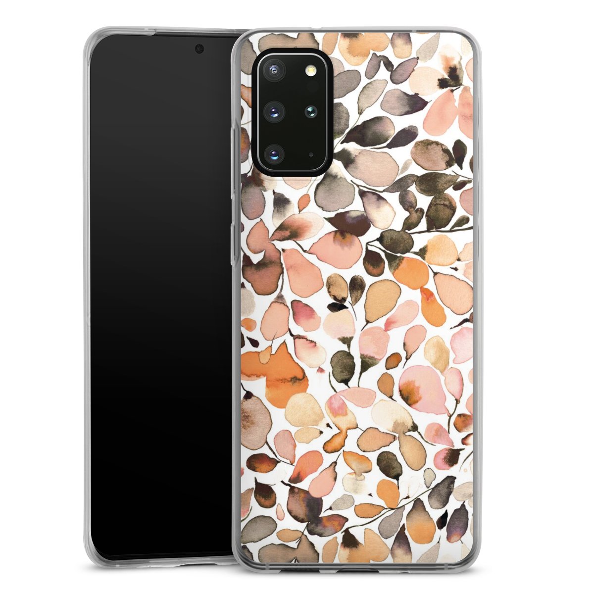 Eucalyptus Watercolor Leaves Dark Brown Autumn