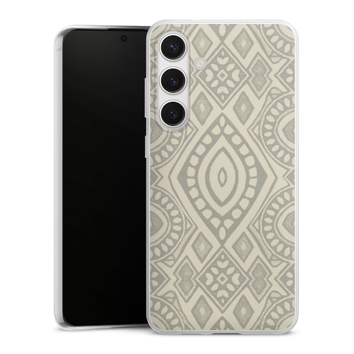 Boho Geometric Mosaic Pattern Neutral Grey and Beige