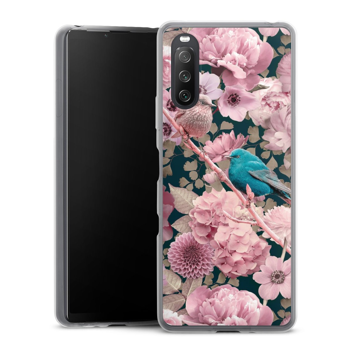Sparrows in Pink Flower Pattern