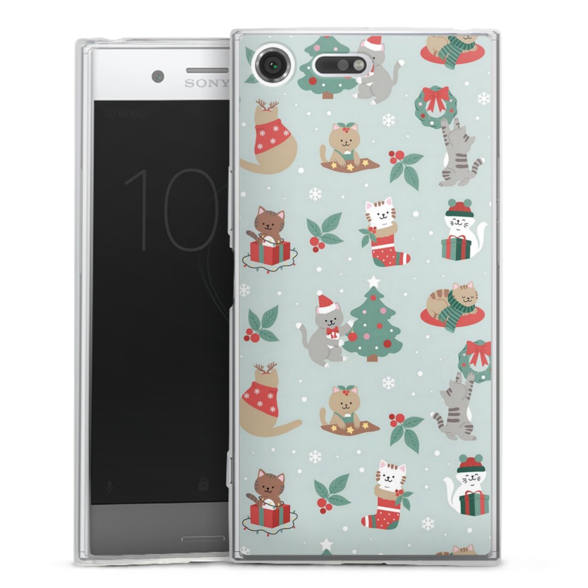 Cute Winter Wonderland Christmas Festive Cats on Teal