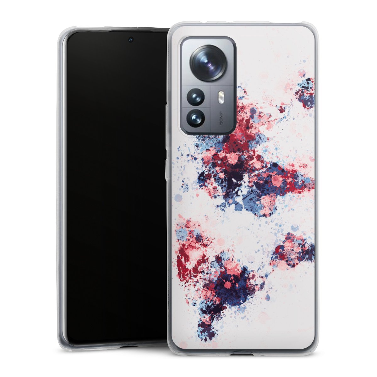 World Map Paint Splashes Blue Red