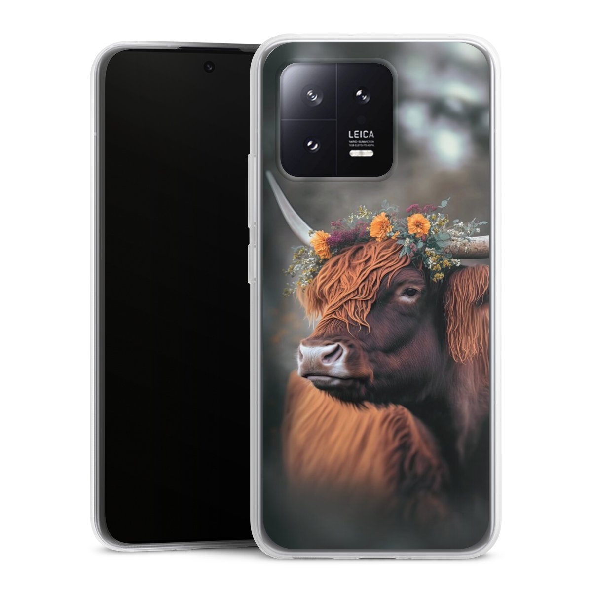Highland Cow With Flowers with AI