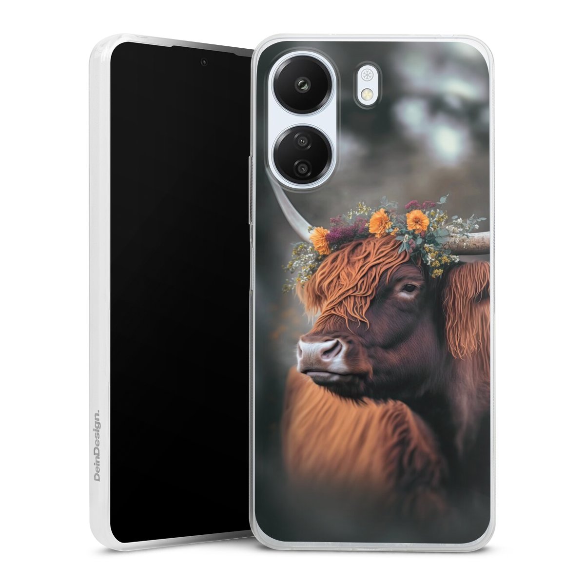 Highland Cow With Flowers with AI
