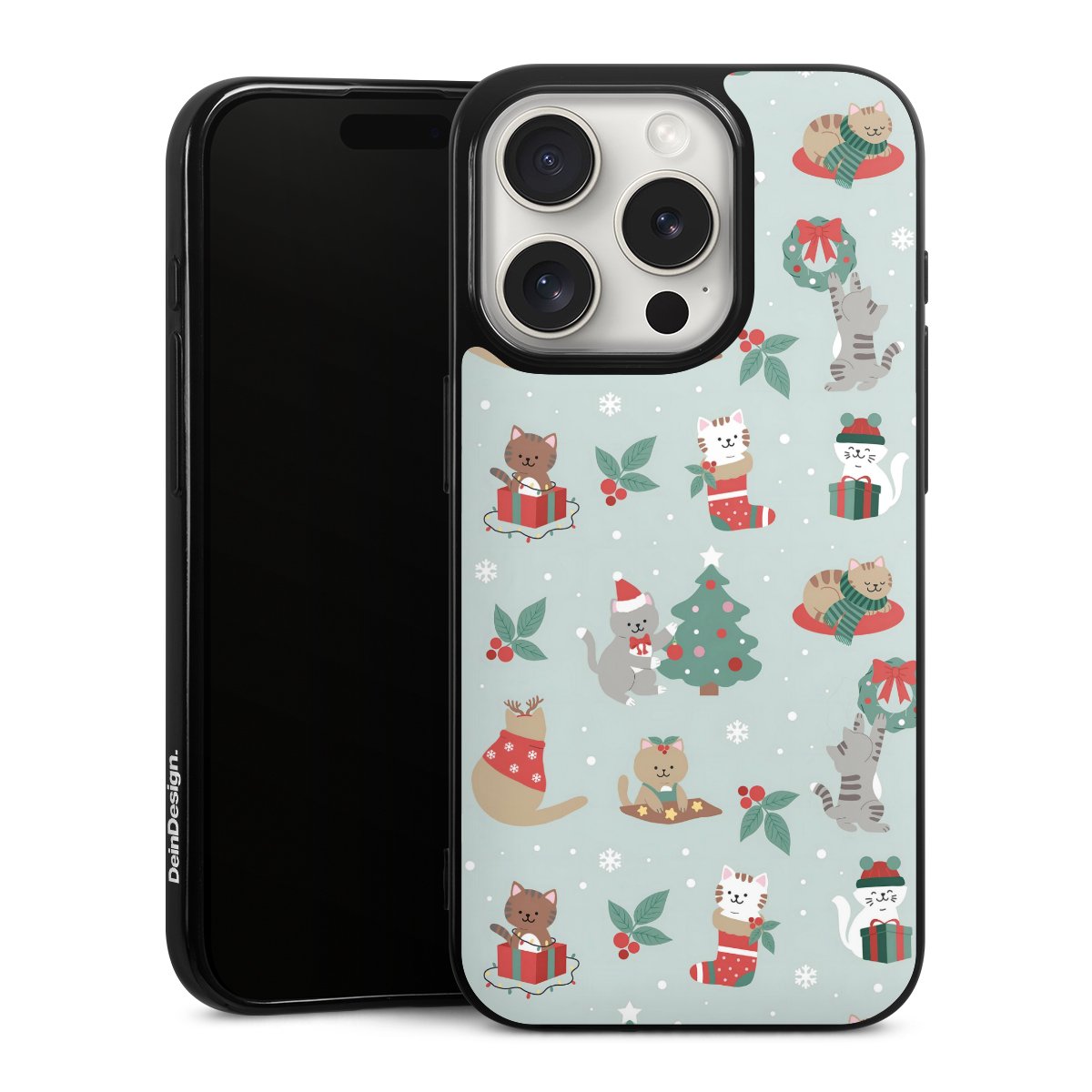 Cute Winter Wonderland Christmas Festive Cats on Teal