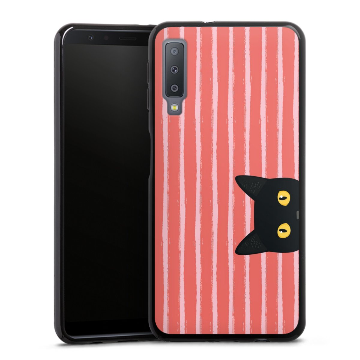 Black Cat on Orange Stripes