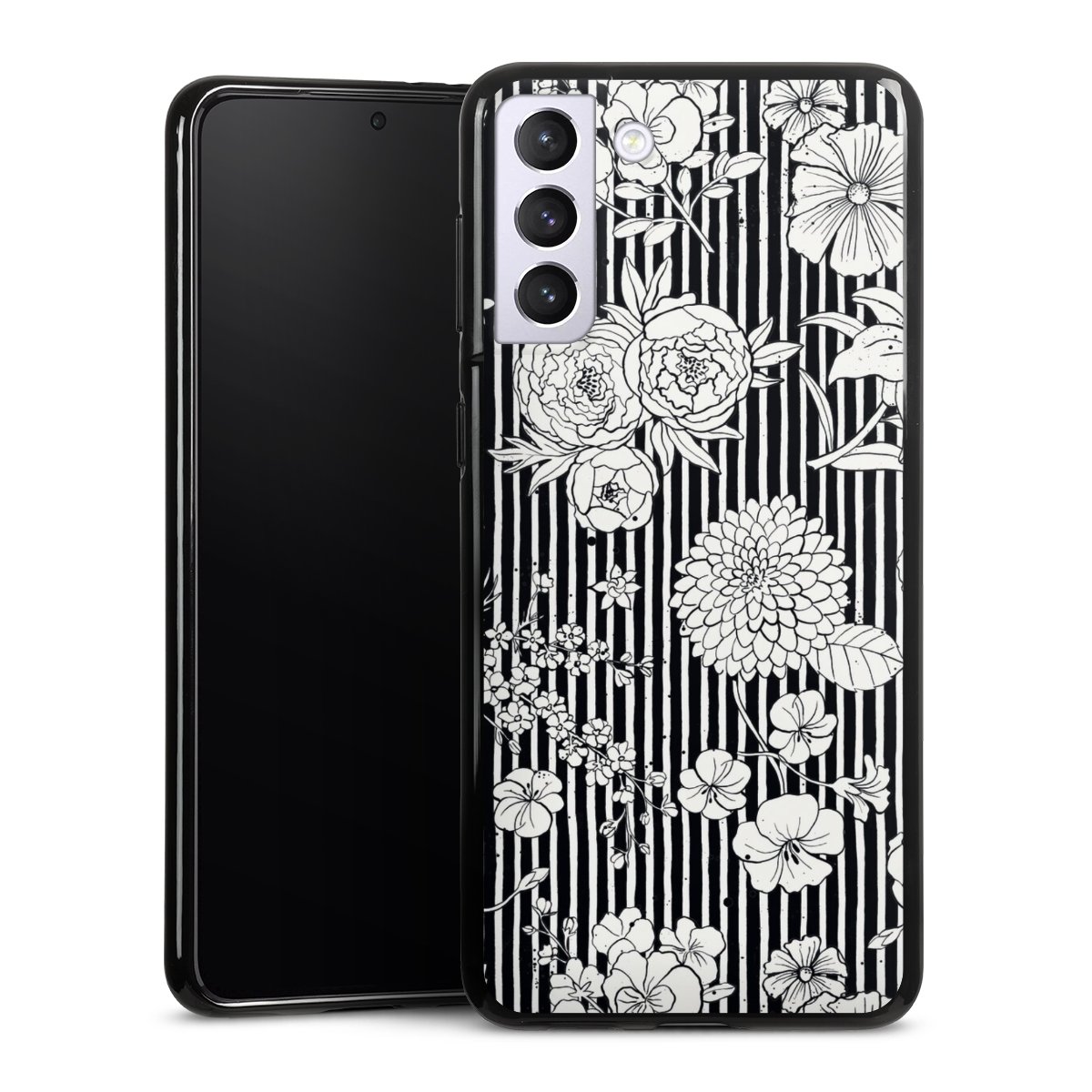 Flowers and Stripes Black and White