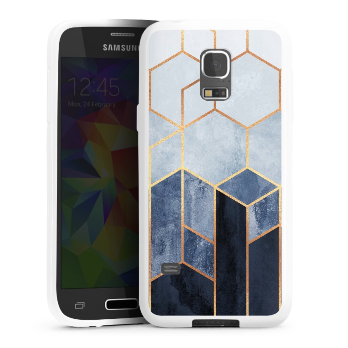 Soft Blue Hexagons Gold Print