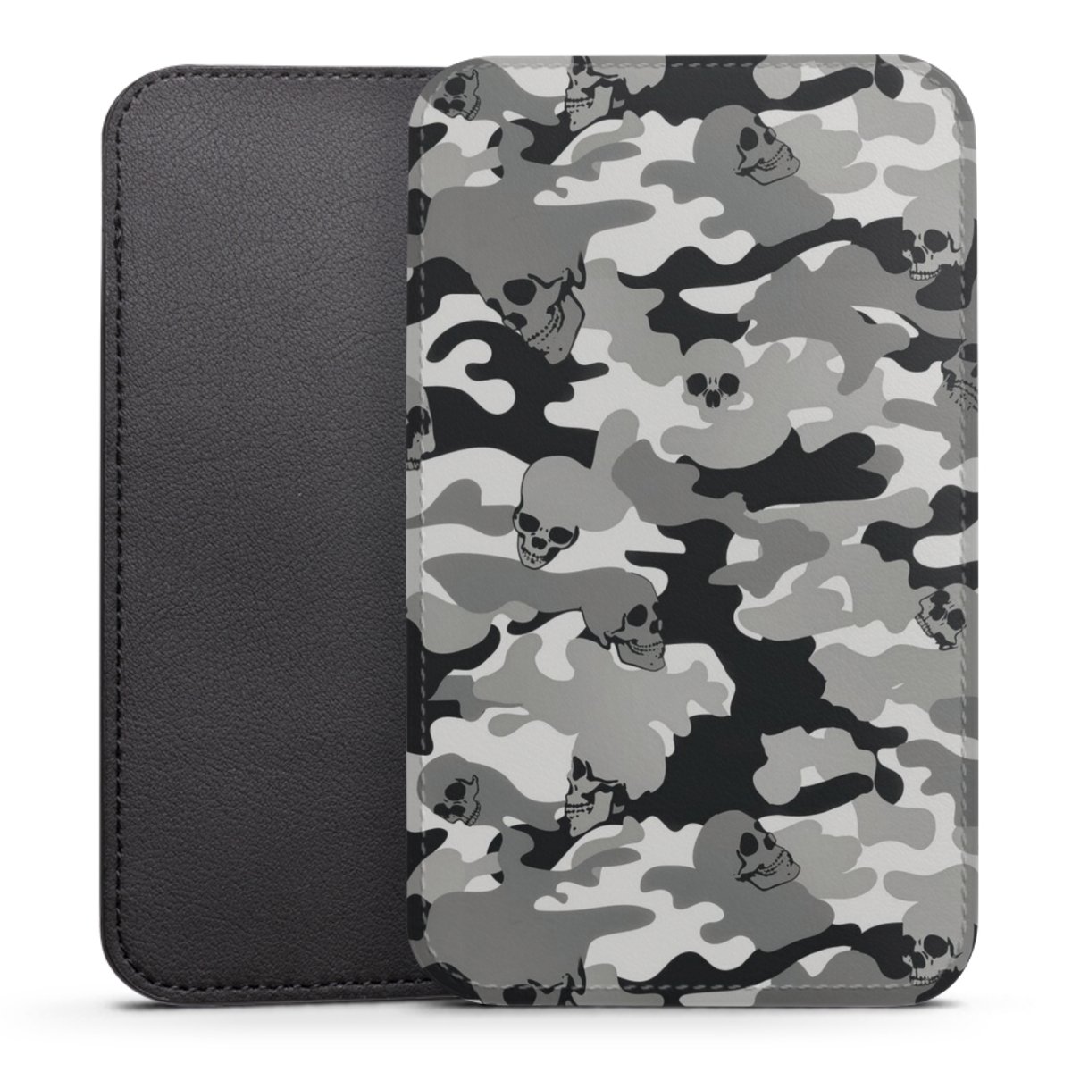 Product details This handy phone sleeve protects your device all around and is made from a highqhality vegan Skai® leather imitate in black on the backside and white on the printable frontside.