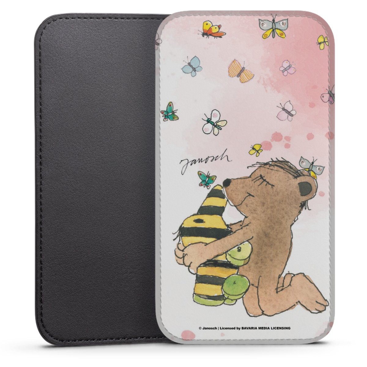 Product details This handy phone sleeve protects your device all around and is made from a highqhality vegan Skai® leather imitate in black on the backside and white on the printable frontside.