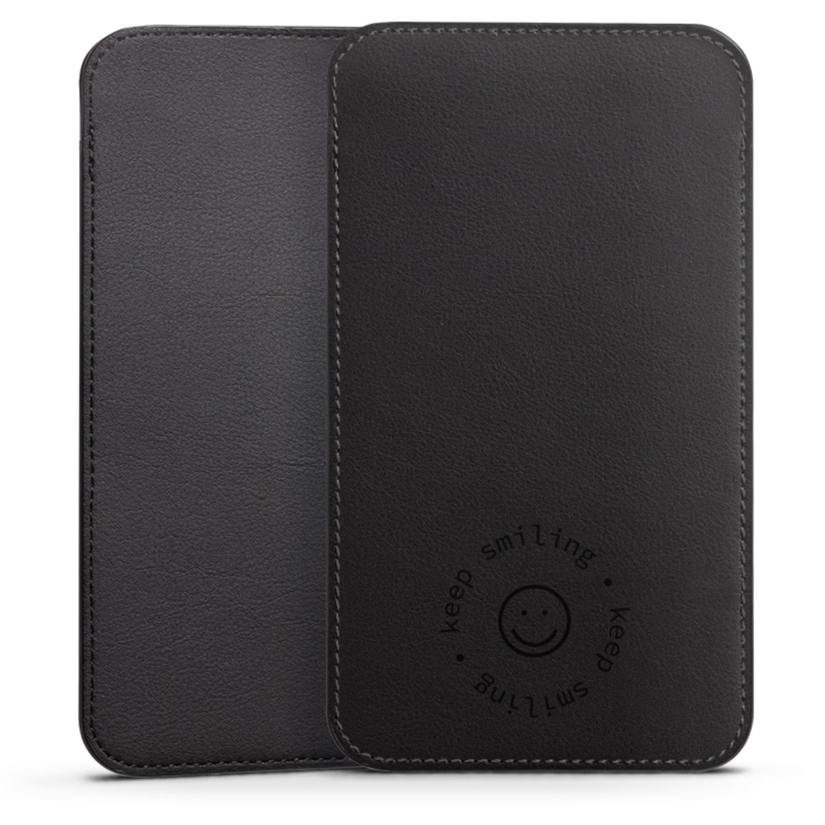 Product details This handy phone sleeve protects your device all around and is made from a highqhality vegan Skai® leather imitate in black on the backside and white on the printable frontside.