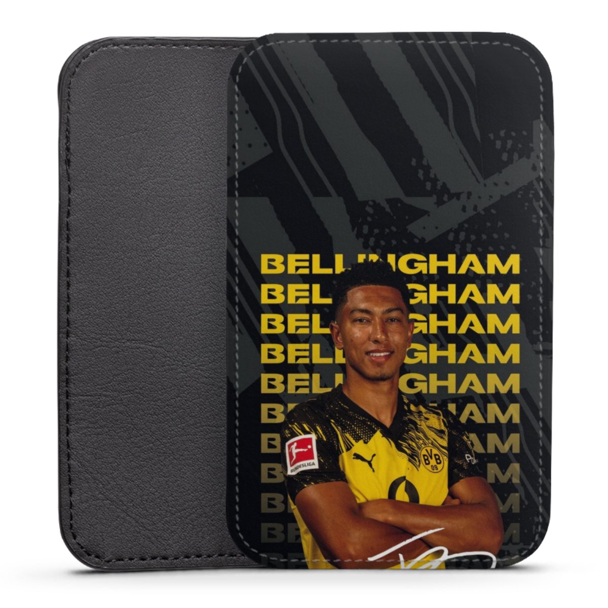 Product details This handy phone sleeve protects your device all around and is made from a highqhality vegan Skai® leather imitate in black on the backside and white on the printable frontside.