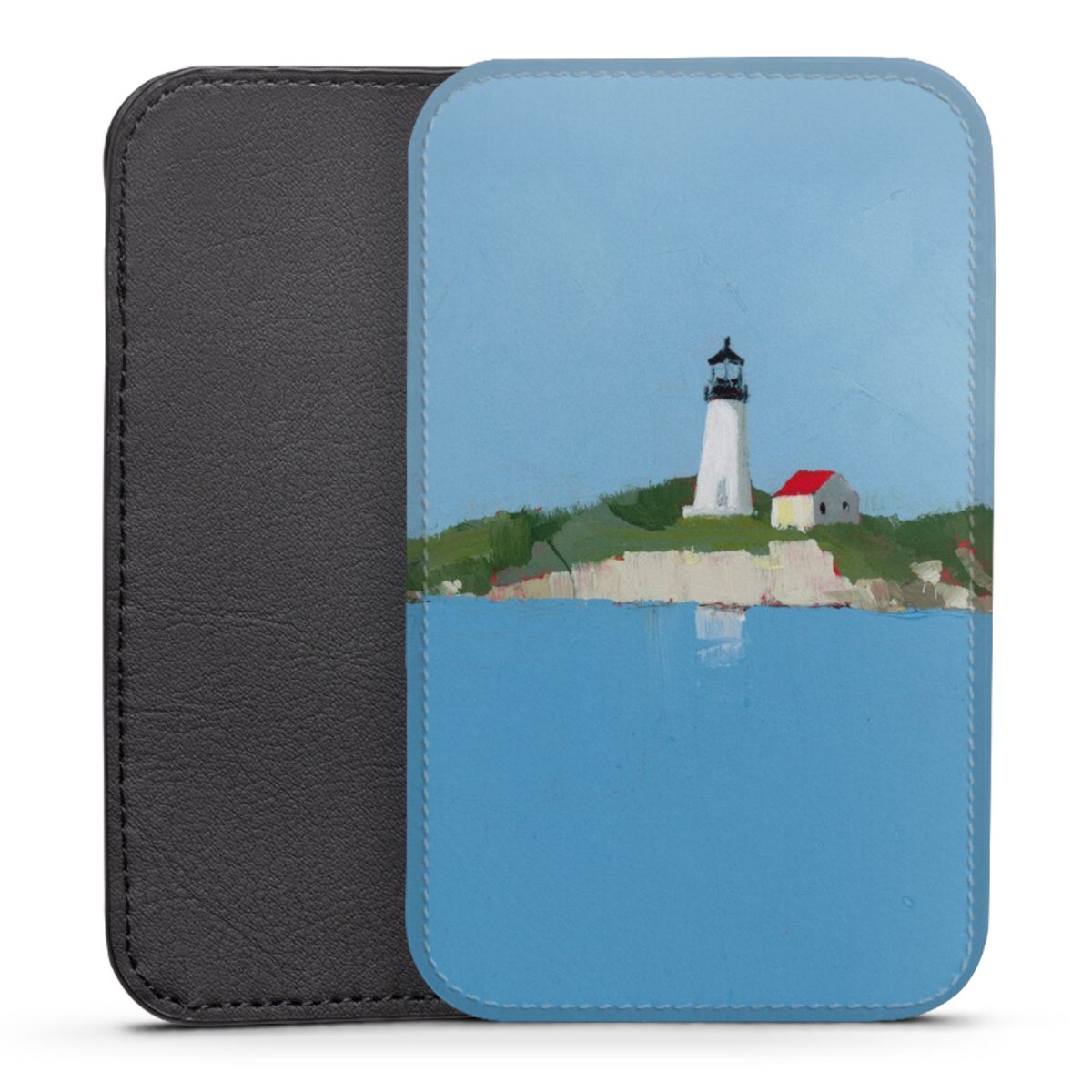 Product details This handy phone sleeve protects your device all around and is made from a highqhality vegan Skai® leather imitate in black on the backside and white on the printable frontside.
