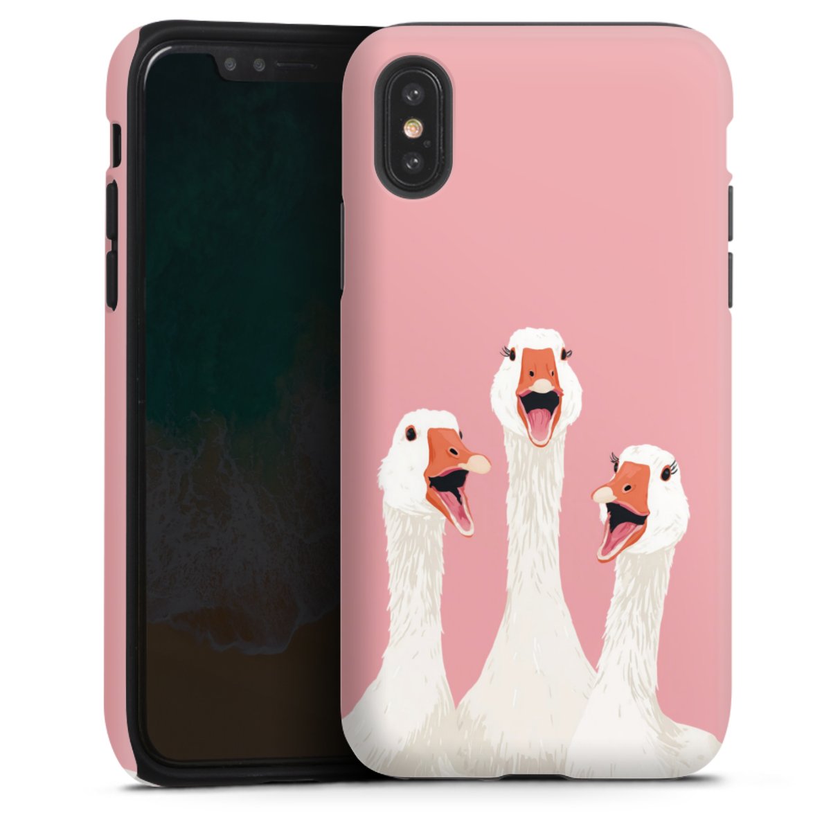 Product details Our most protective phone case combines the advantages of the Silicone and Premium Case: the flexible silicone core on the inside offers an extra shockabsorbing layer, protecting reliably against damages from dropping your phone. The longlasting, polycarbonate hard shell ensures additional stability and a brilliant print result. The surface of the 2,6 mm strong case feels smooth offering a comfortable grip. The case is available with a matt and glossy finish.