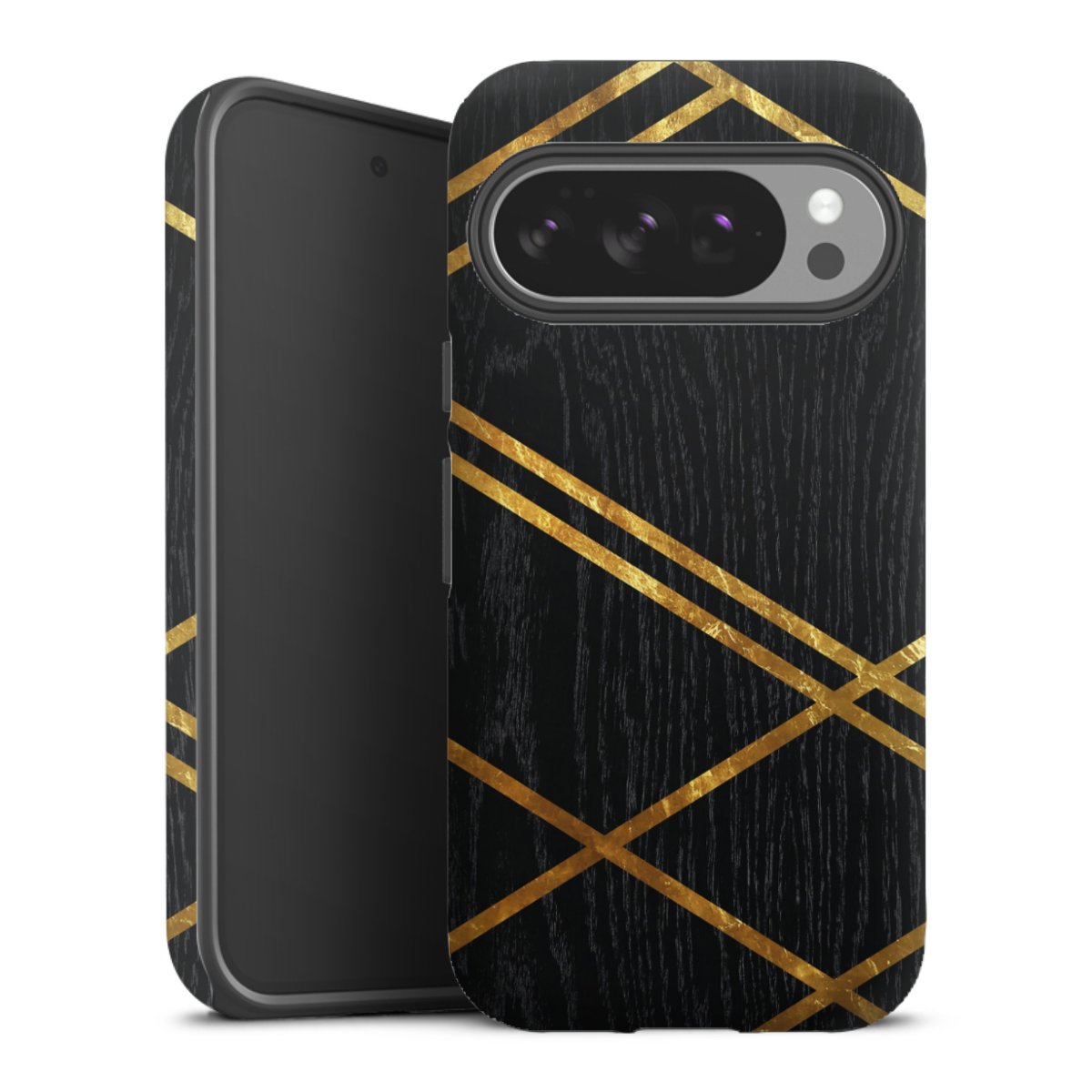 Black Geometric Pattern Golden Stripes