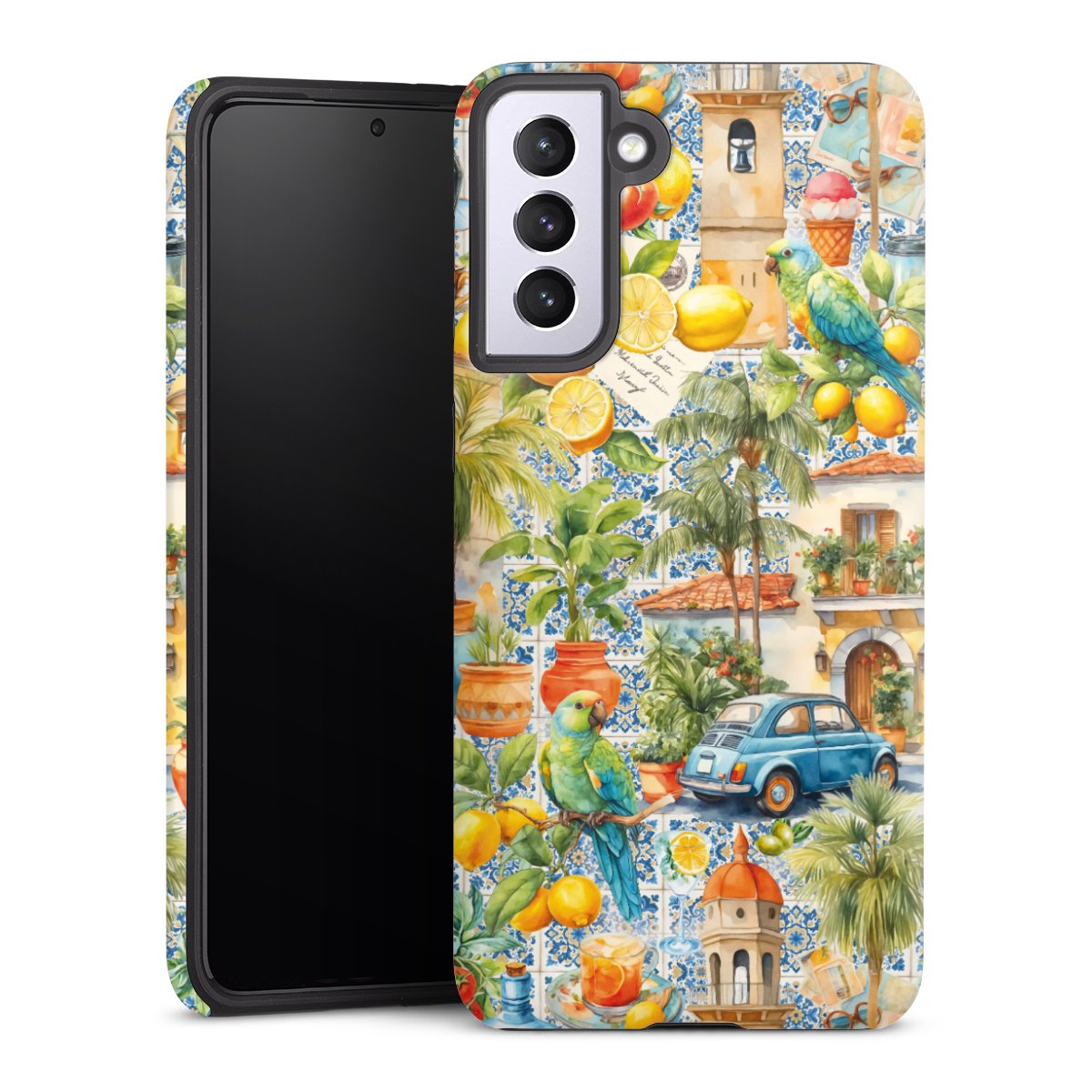 Product details Our most protective phone case combines the advantages of the Silicone and Premium Case: the flexible silicone core on the inside offers an extra shockabsorbing layer, protecting reliably against damages from dropping your phone. The longlasting, polycarbonate hard shell ensures additional stability and a brilliant print result. The surface of the 2,6 mm strong case feels smooth offering a comfortable grip. The case is available with a matt and glossy finish.