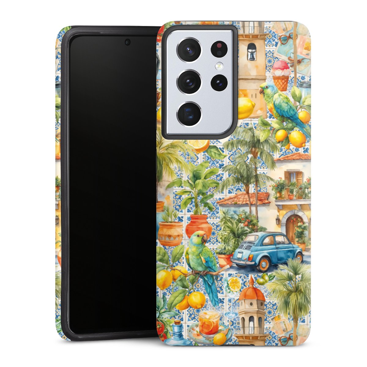 Product details Our most protective phone case combines the advantages of the Silicone and Premium Case: the flexible silicone core on the inside offers an extra shockabsorbing layer, protecting reliably against damages from dropping your phone. The longlasting, polycarbonate hard shell ensures additional stability and a brilliant print result. The surface of the 2,6 mm strong case feels smooth offering a comfortable grip. The case is available with a matt and glossy finish.