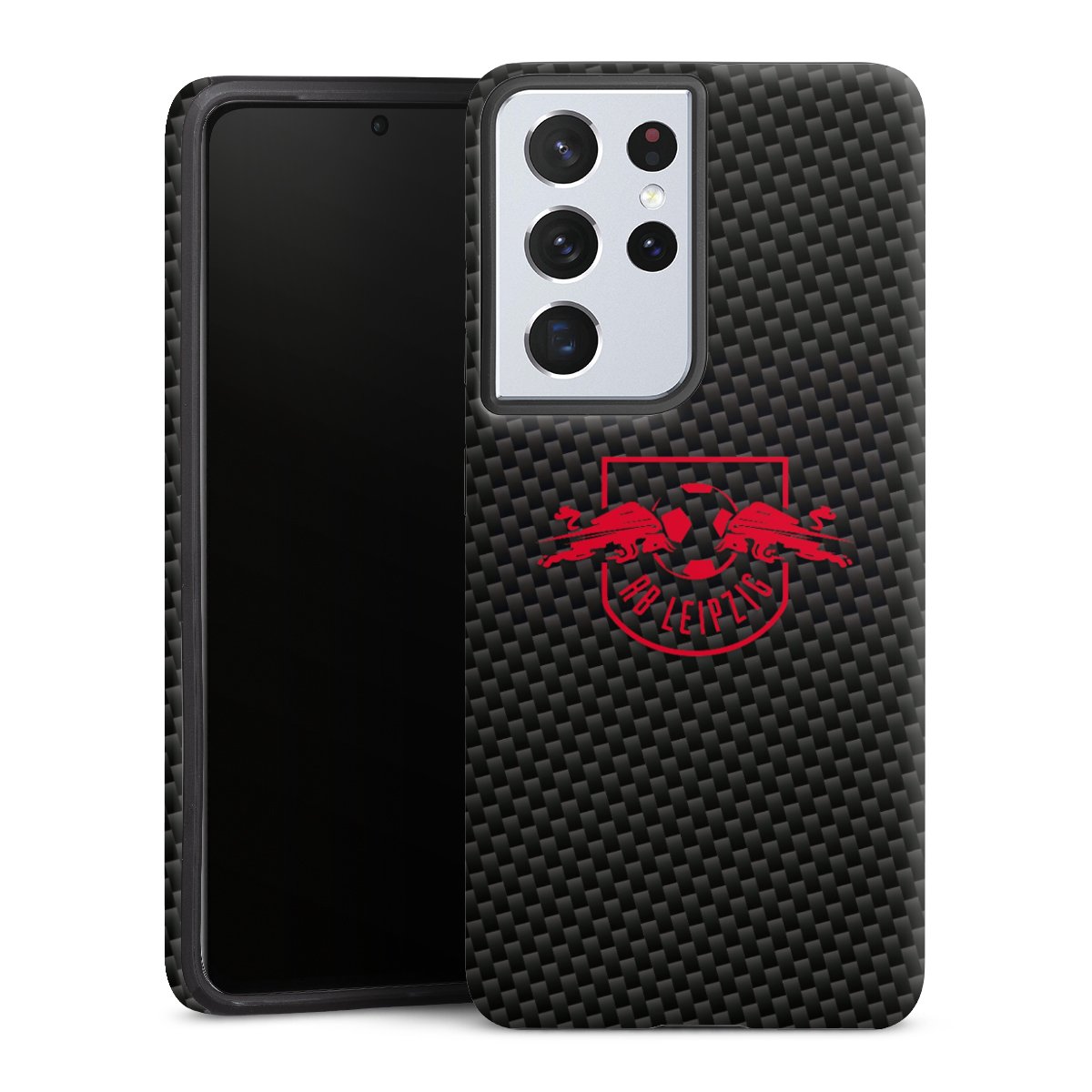 Red RB Leipzig logo on carbon look
