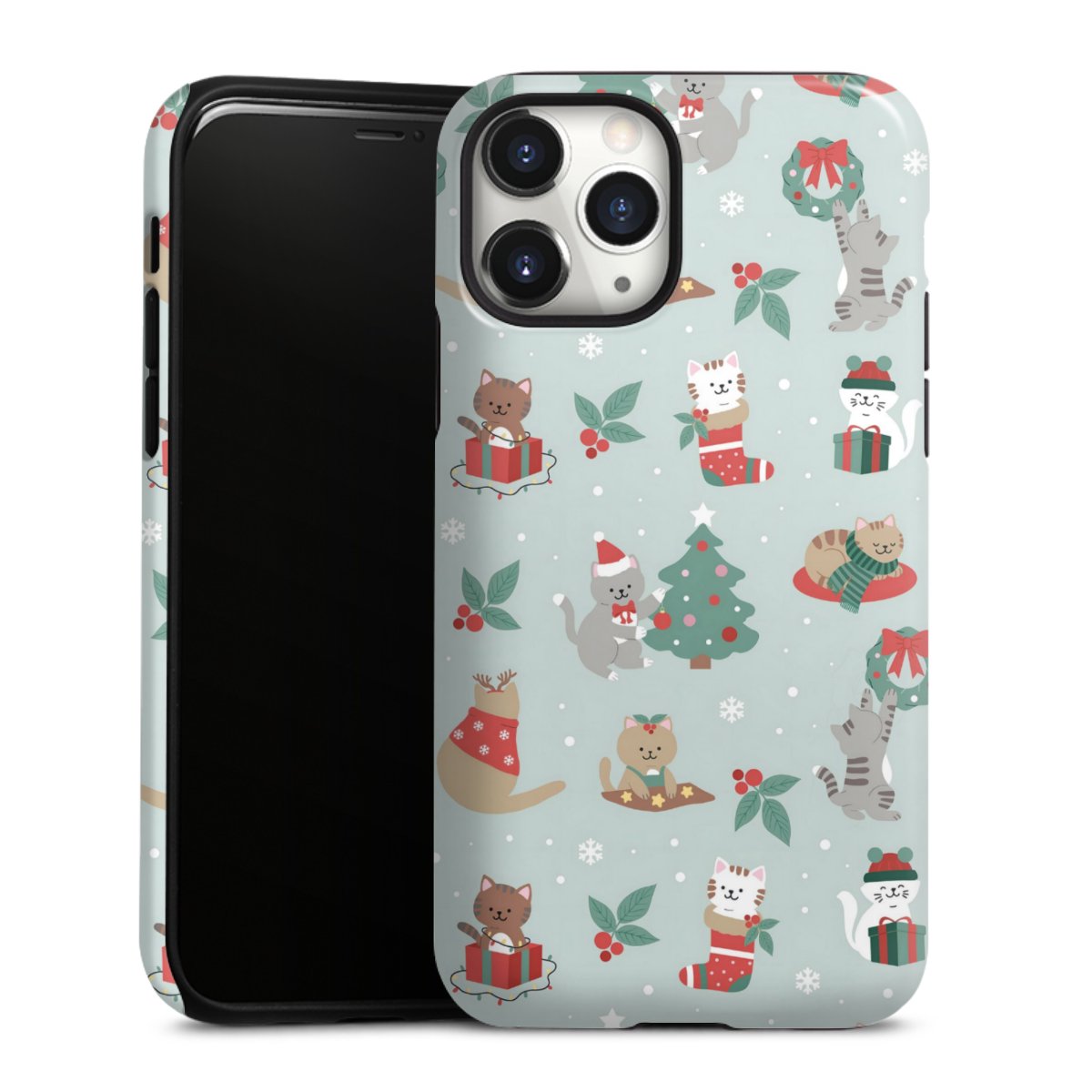 Cute Winter Wonderland Christmas Festive Cats on Teal