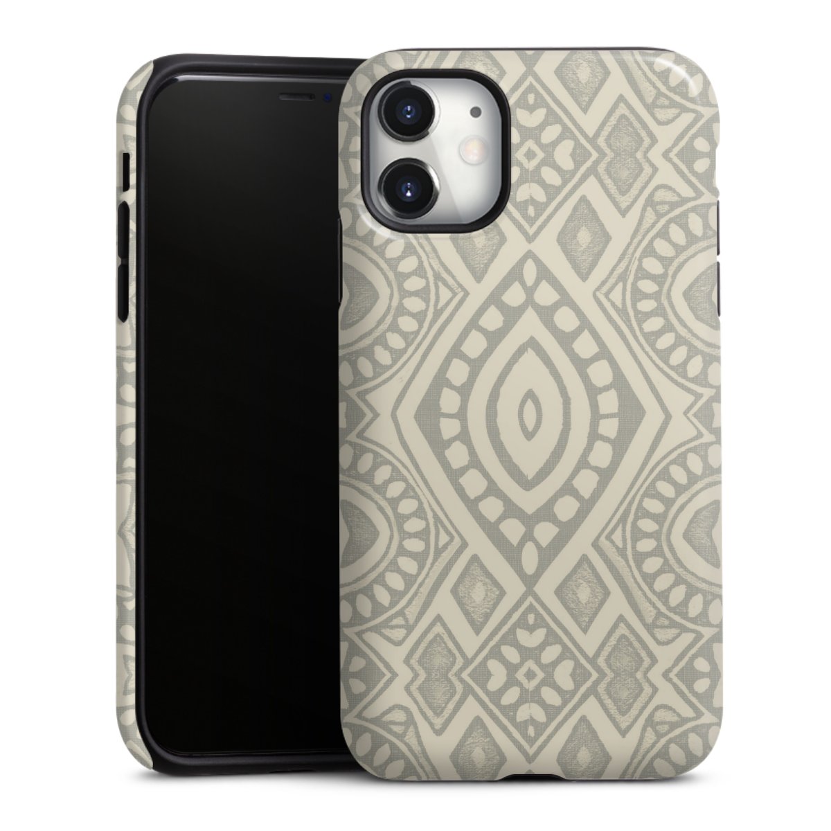 Boho Geometric Mosaic Pattern Neutral Grey and Beige