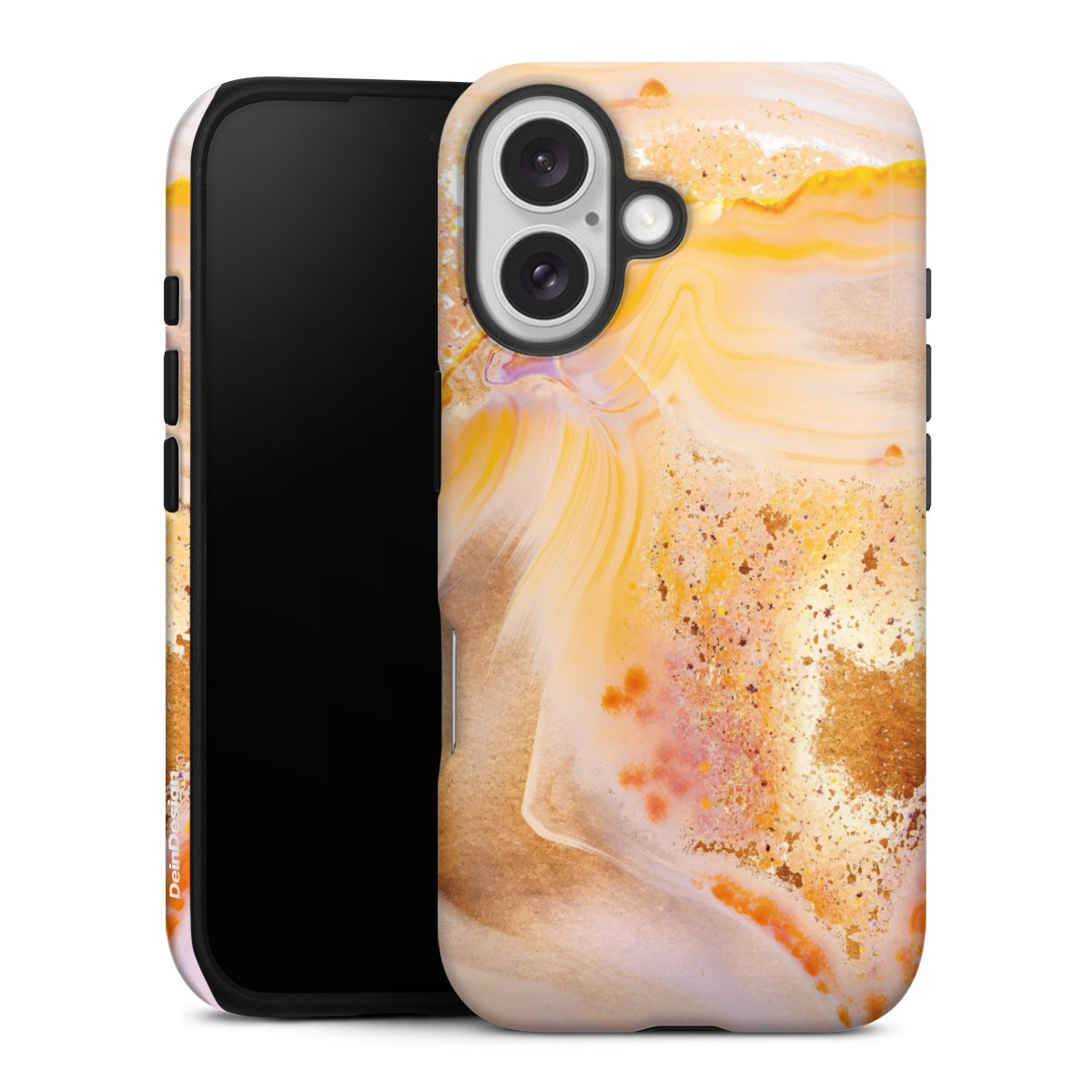 Product details Our most protective phone case combines the advantages of the Silicone and Premium Case: the flexible silicone core on the inside offers an extra shockabsorbing layer, protecting reliably against damages from dropping your phone. The longlasting, polycarbonate hard shell ensures additional stability and a brilliant print result. The surface of the 2,6 mm strong case feels smooth offering a comfortable grip. The case is available with a matt and glossy finish.