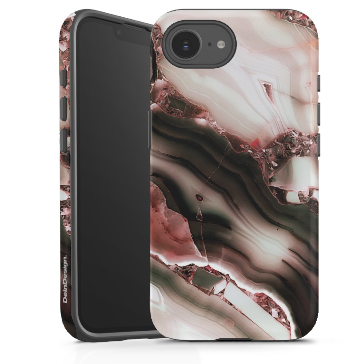Product details Our most protective phone case combines the advantages of the Silicone and Premium Case: the flexible silicone core on the inside offers an extra shockabsorbing layer, protecting reliably against damages from dropping your phone. The longlasting, polycarbonate hard shell ensures additional stability and a brilliant print result. The surface of the 2,6 mm strong case feels smooth offering a comfortable grip. The case is available with a matt and glossy finish.