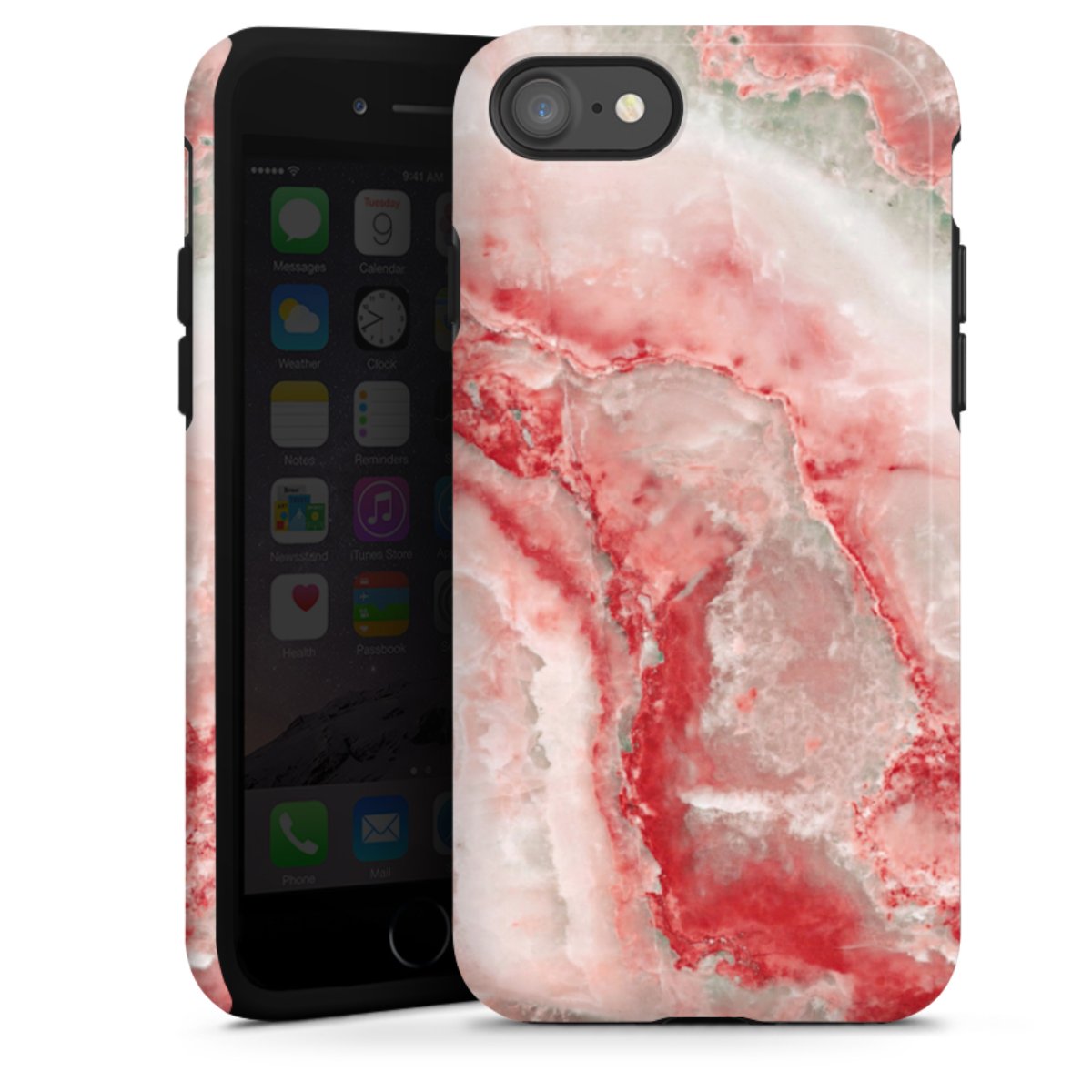 Product details Our most protective phone case combines the advantages of the Silicone and Premium Case: the flexible silicone core on the inside offers an extra shockabsorbing layer, protecting reliably against damages from dropping your phone. The longlasting, polycarbonate hard shell ensures additional stability and a brilliant print result. The surface of the 2,6 mm strong case feels smooth offering a comfortable grip. The case is available with a matt and glossy finish.