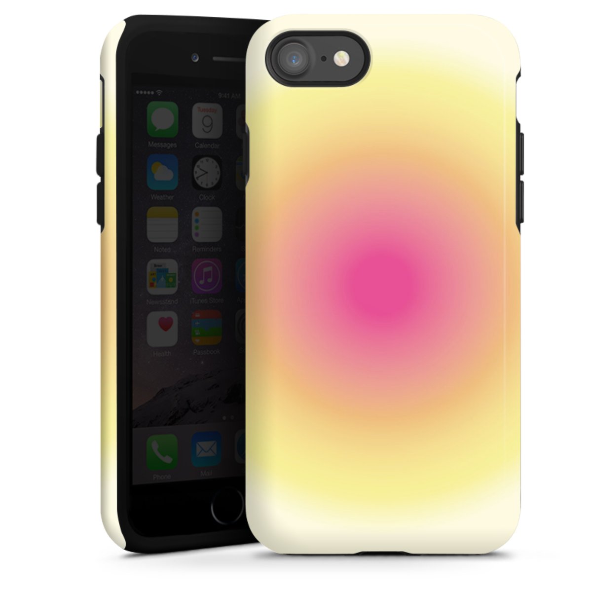 Product details Our most protective phone case combines the advantages of the Silicone and Premium Case: the flexible silicone core on the inside offers an extra shockabsorbing layer, protecting reliably against damages from dropping your phone. The longlasting, polycarbonate hard shell ensures additional stability and a brilliant print result. The surface of the 2,6 mm strong case feels smooth offering a comfortable grip. The case is available with a matt and glossy finish.