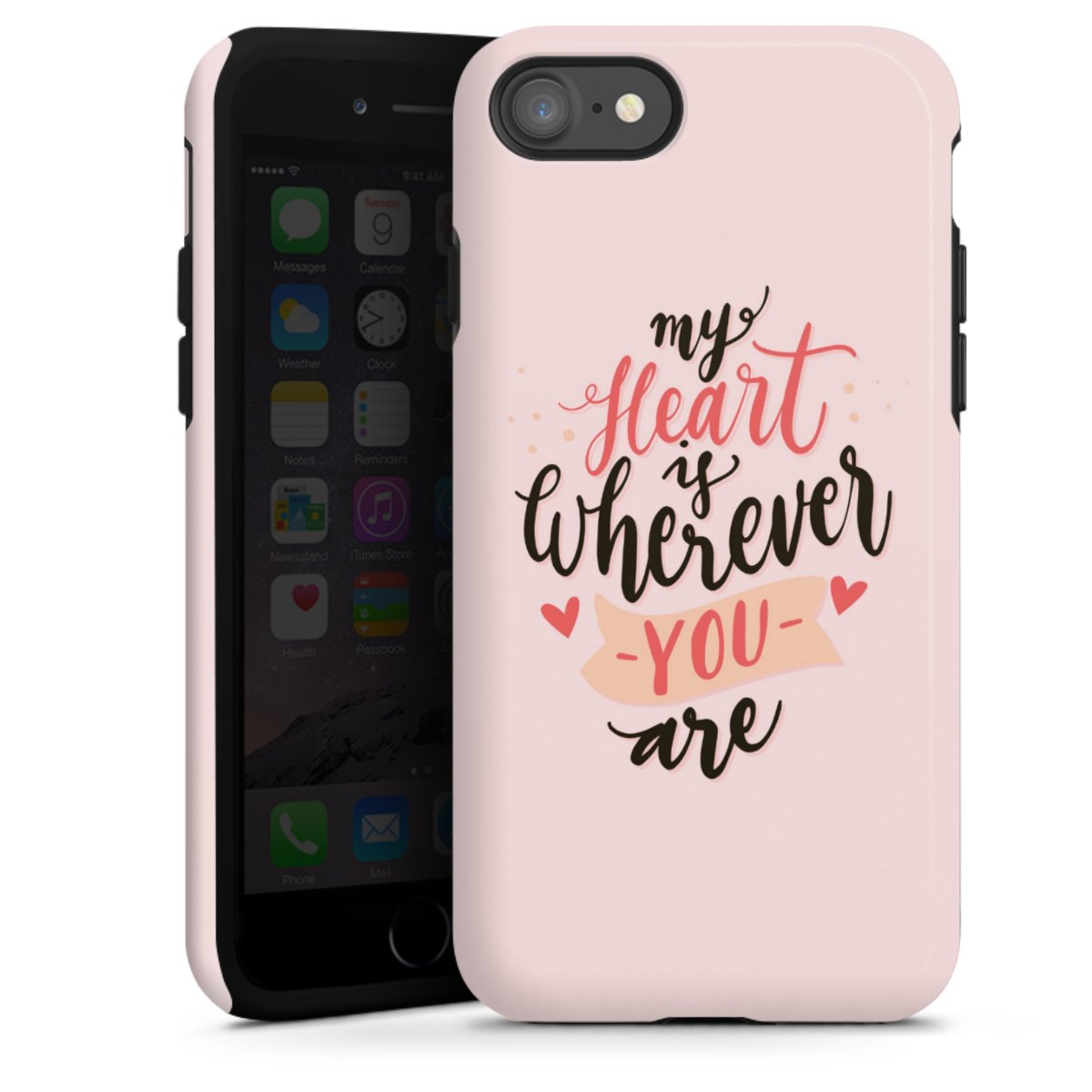 Product details Our most protective phone case combines the advantages of the Silicone and Premium Case: the flexible silicone core on the inside offers an extra shockabsorbing layer, protecting reliably against damages from dropping your phone. The longlasting, polycarbonate hard shell ensures additional stability and a brilliant print result. The surface of the 2,6 mm strong case feels smooth offering a comfortable grip. The case is available with a matt and glossy finish.