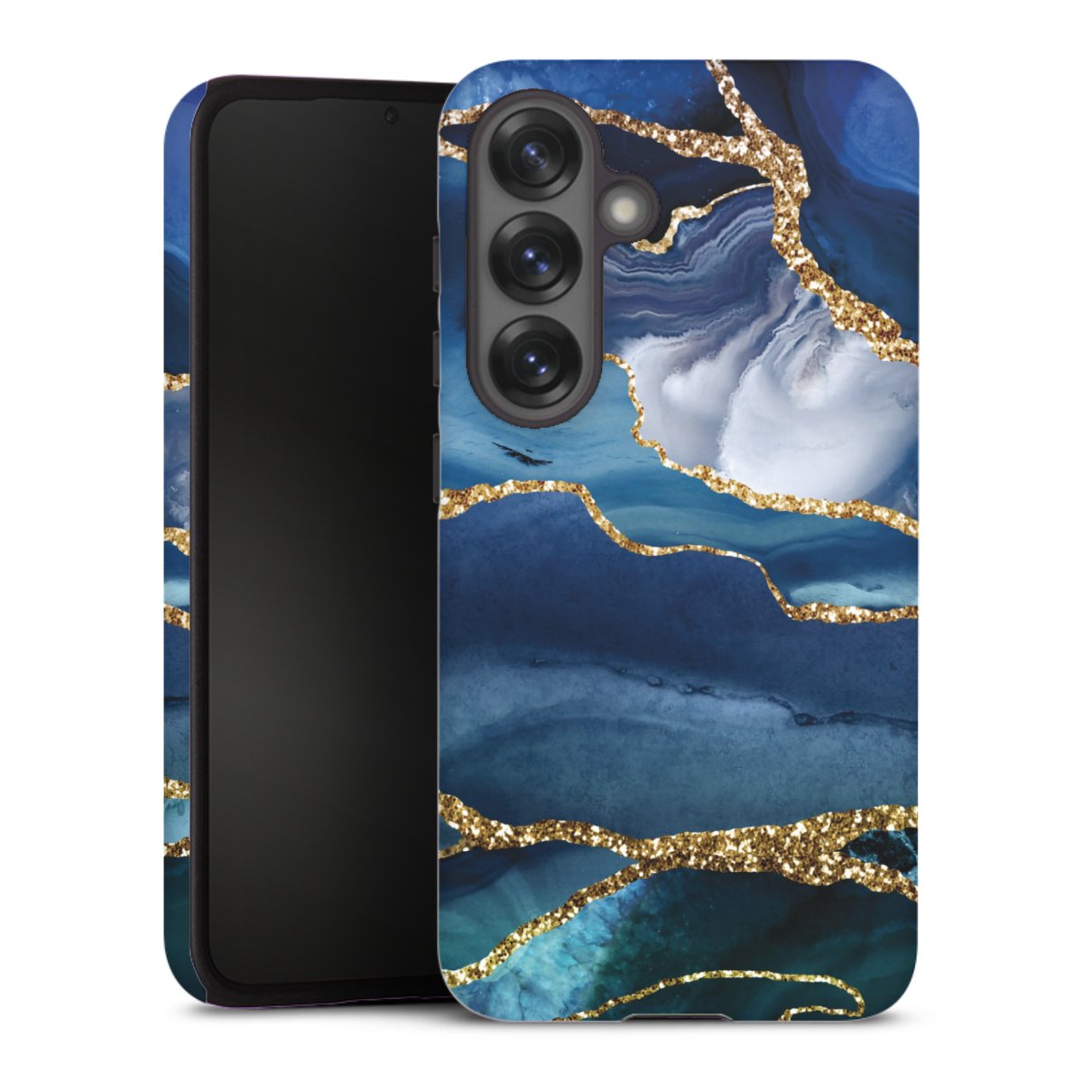Blue Marble Gold Glitter Look