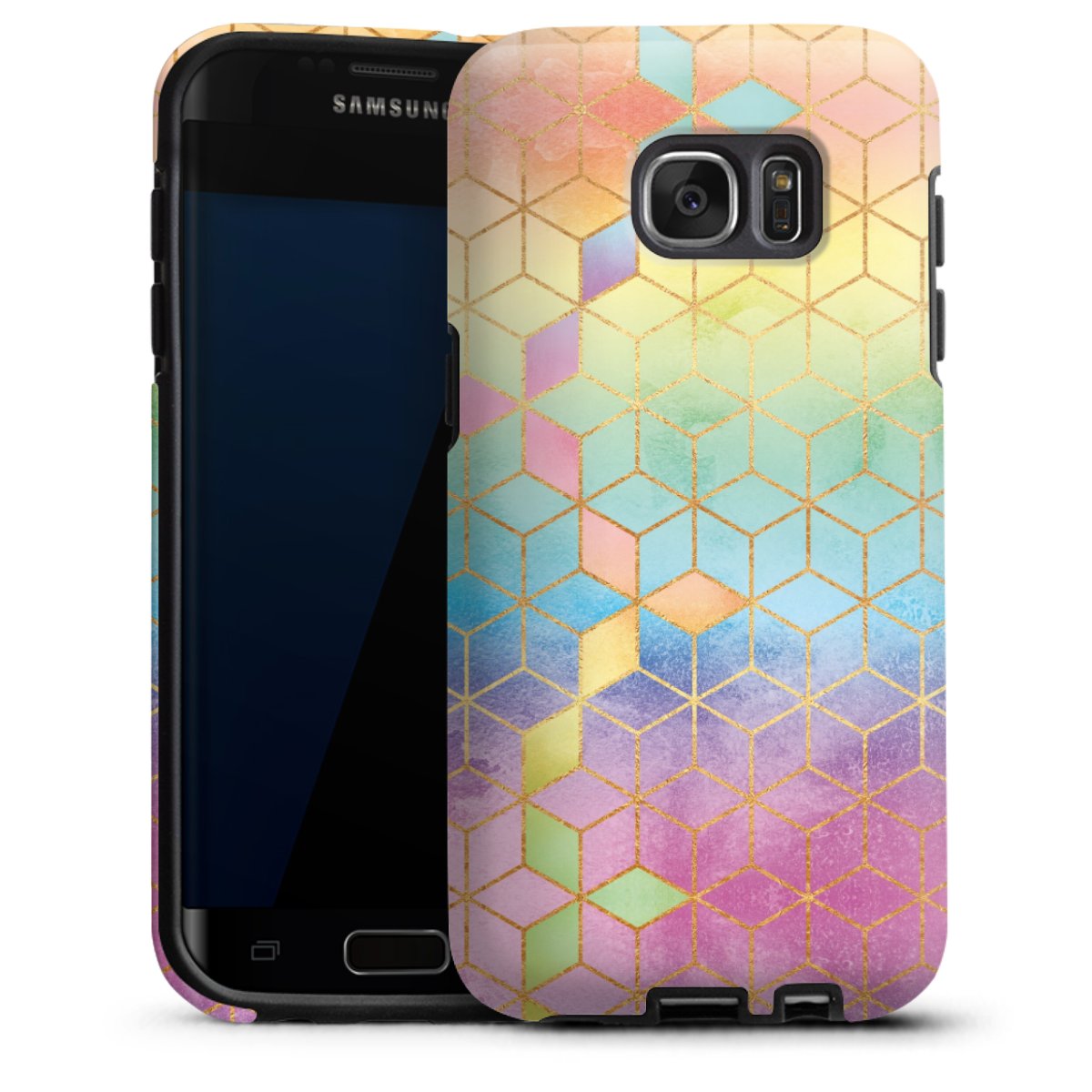 Print technology For our Tough Case we are using our specially advanced and longlasting sublimation print. This refined technology excels through its highquality, brilliant and pin-sharp print. The printable area covers the entire case: backside, frame and edges are fully printed. The silicone core remains unprinted. Choose one of our exklusive, pre-made shop designs or let your creativity shine and create your very own unique design with your pictures, overlays and text.