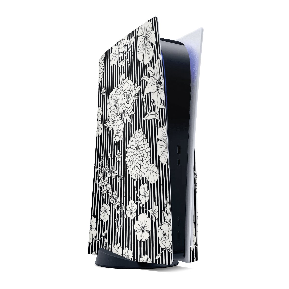 Flowers and Stripes Black and White