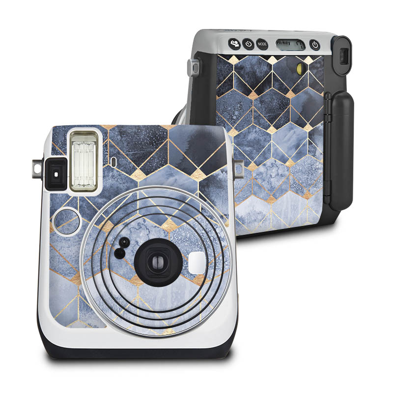 Blue Hexagons And Diamonds Gold Print