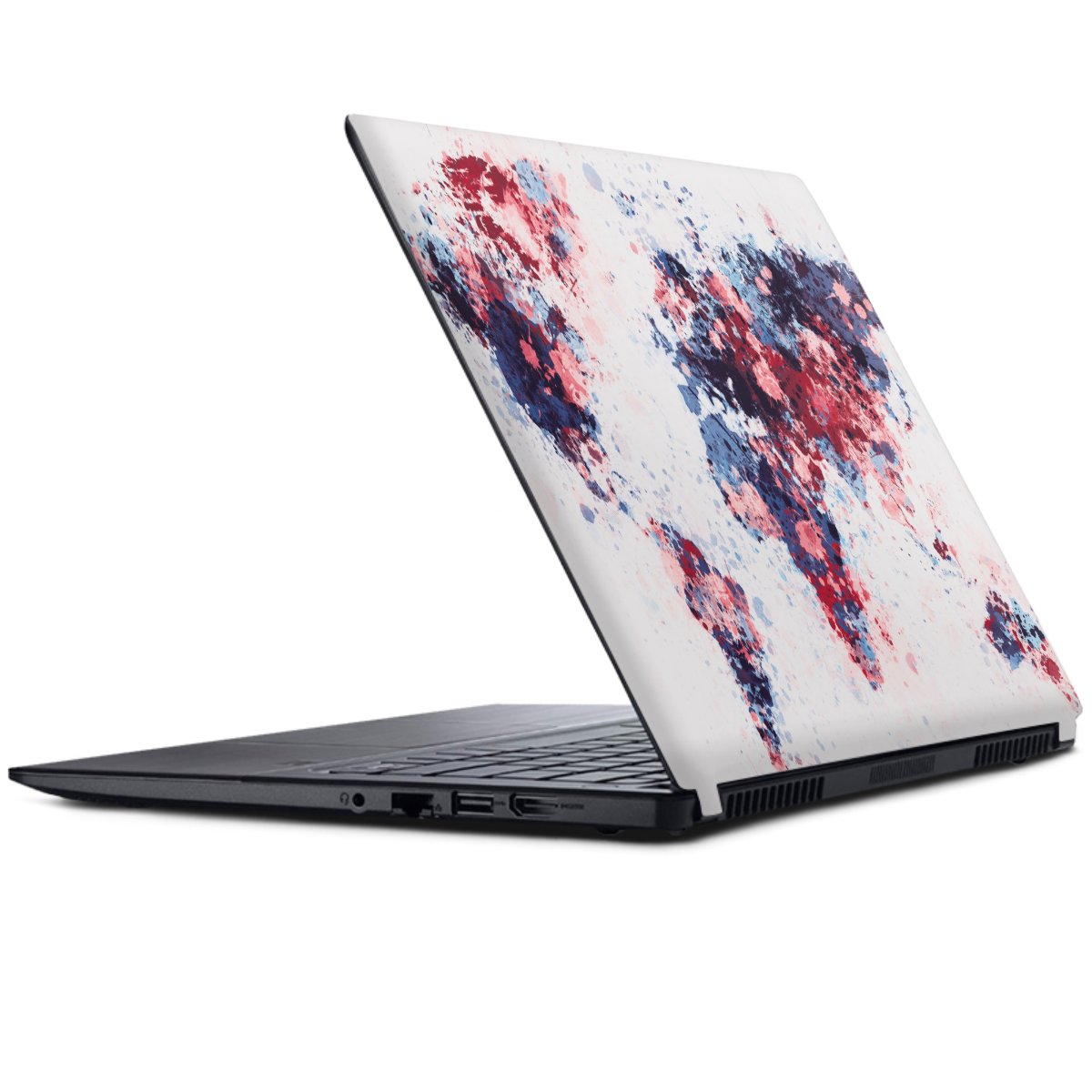 World Map Paint Splashes Blue Red