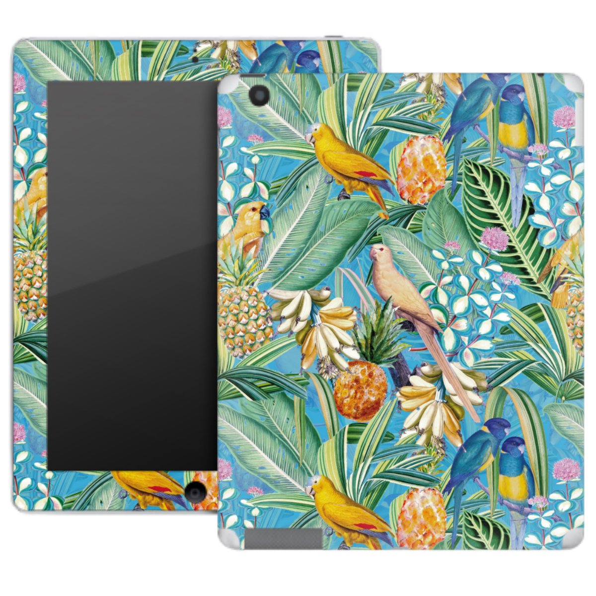 Tropical Parrots on Blue Wallpaper