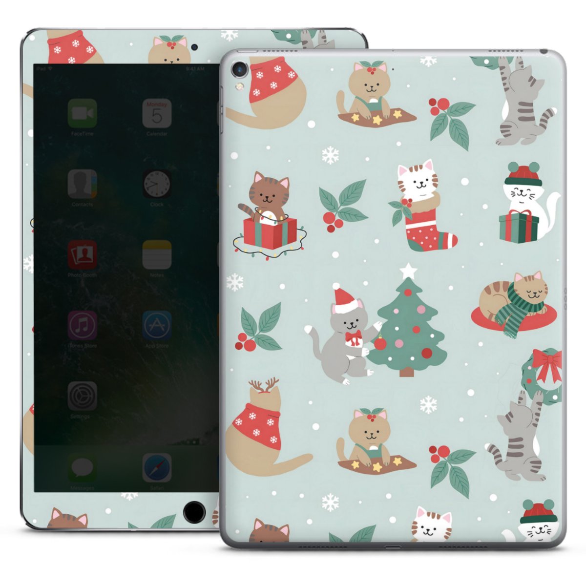 Cute Winter Wonderland Christmas Festive Cats on Teal