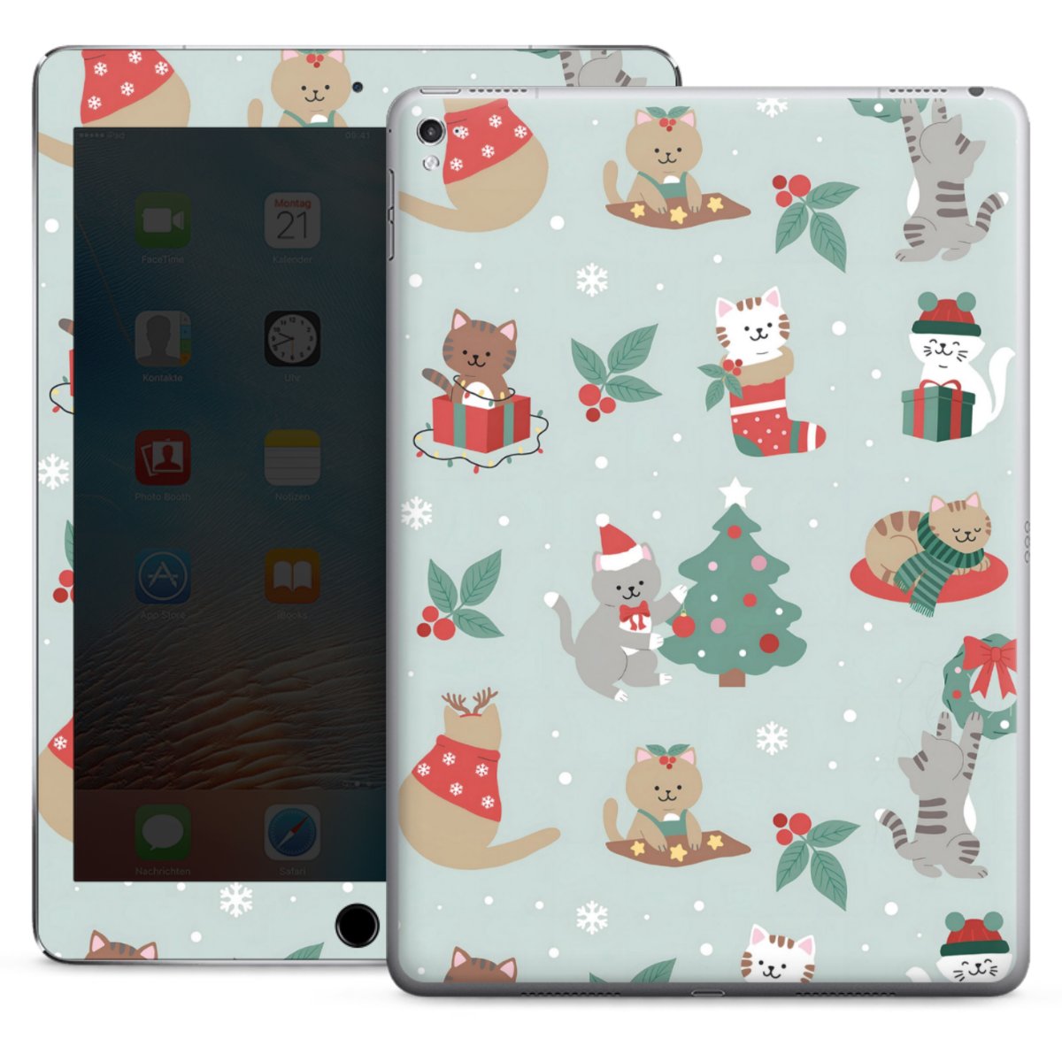 Cute Winter Wonderland Christmas Festive Cats on Teal