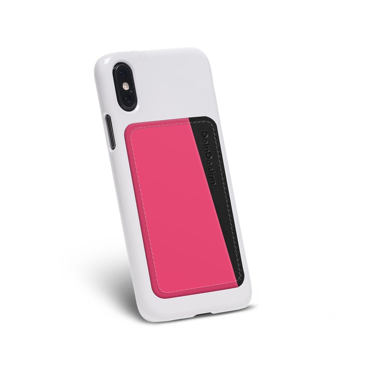 We advise to clean your phone case with a soft cloth and a mild detergent first. On the back of the card holder you will find an adhesive strip. Pull off the protective film and press the card holder firmly against the phone case – that’s it!