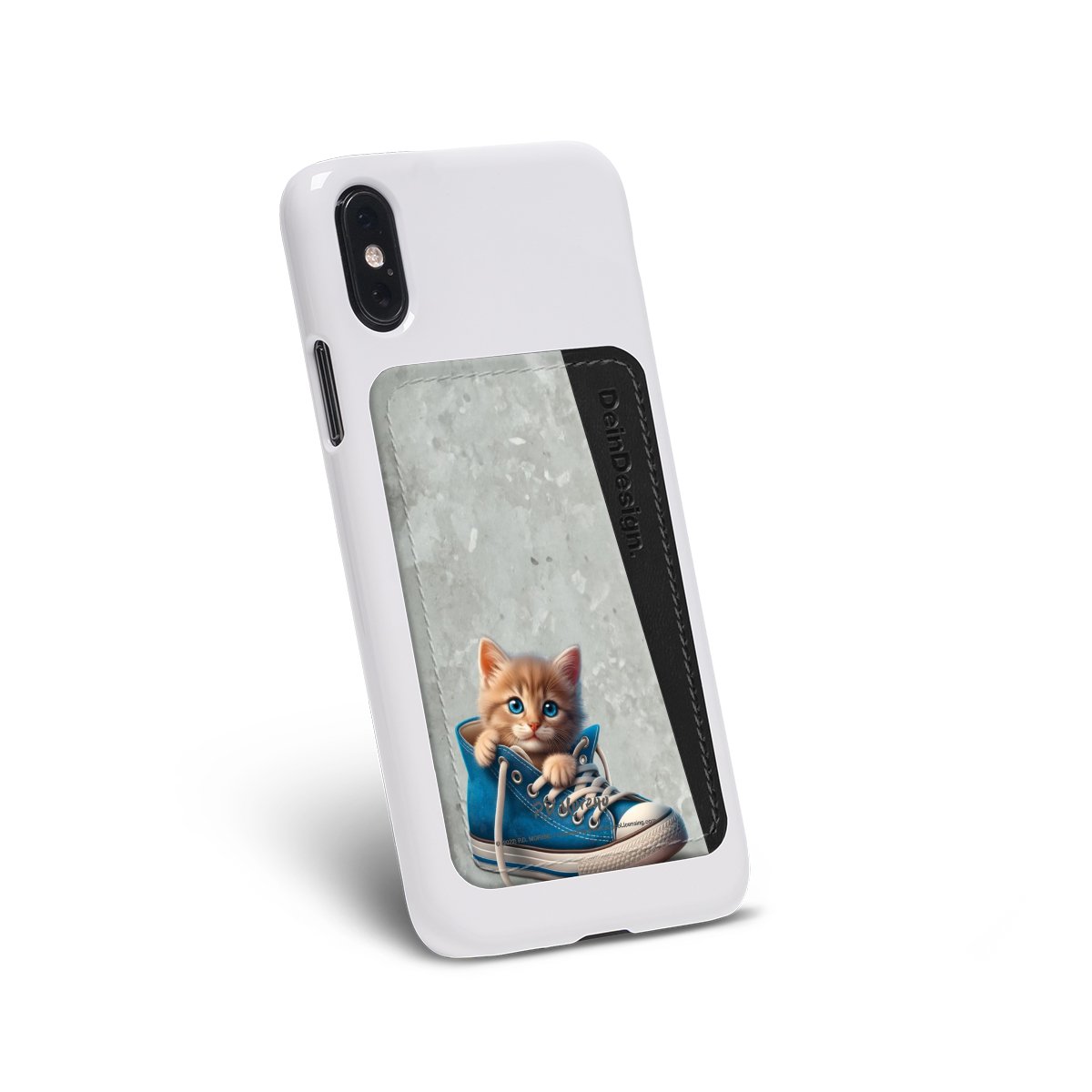 We advise to clean your phone case with a soft cloth and a mild detergent first. On the back of the card holder you will find an adhesive strip. Pull off the protective film and press the card holder firmly against the phone case – that’s it!