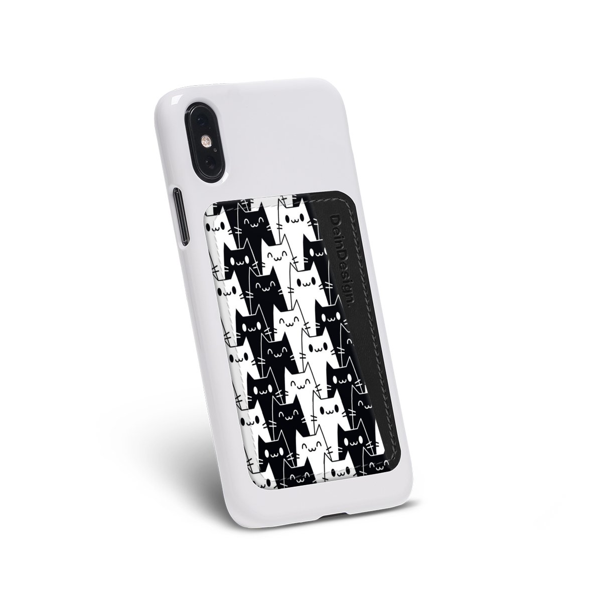 We advise to clean your phone case with a soft cloth and a mild detergent first. On the back of the card holder you will find an adhesive strip. Pull off the protective film and press the card holder firmly against the phone case – that’s it!